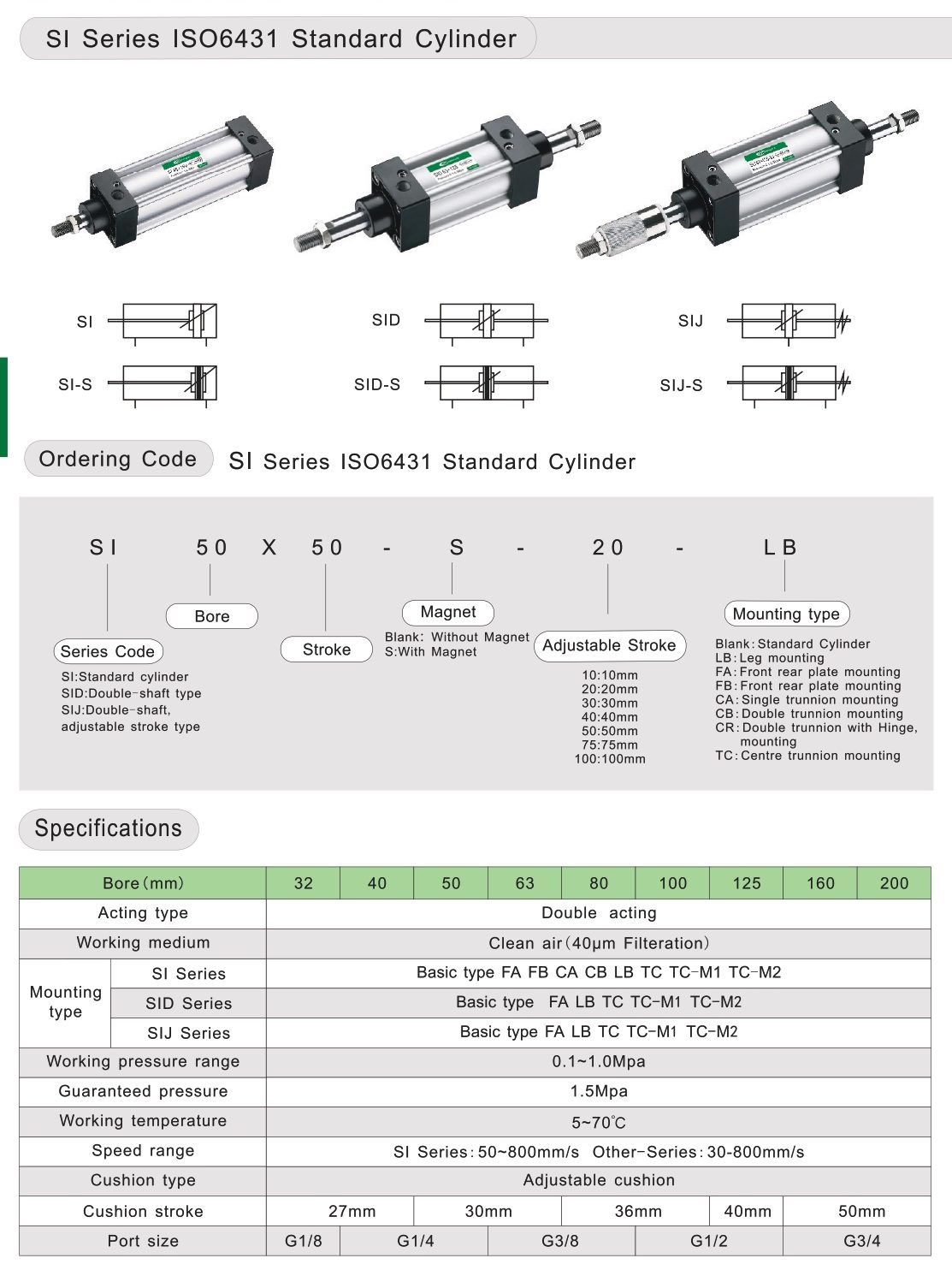 SI Series ISO6431 Standard Cylinder